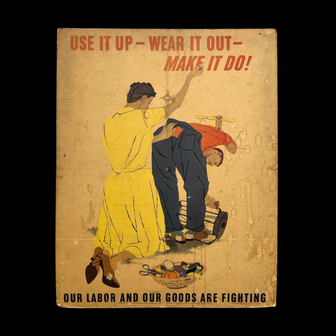 Recycling, patching, and mending old clothes was soon adopted as more than a need for the thrifty, it was a trend that visibly showed a woman’s patriotism and loyalty to the war effort.