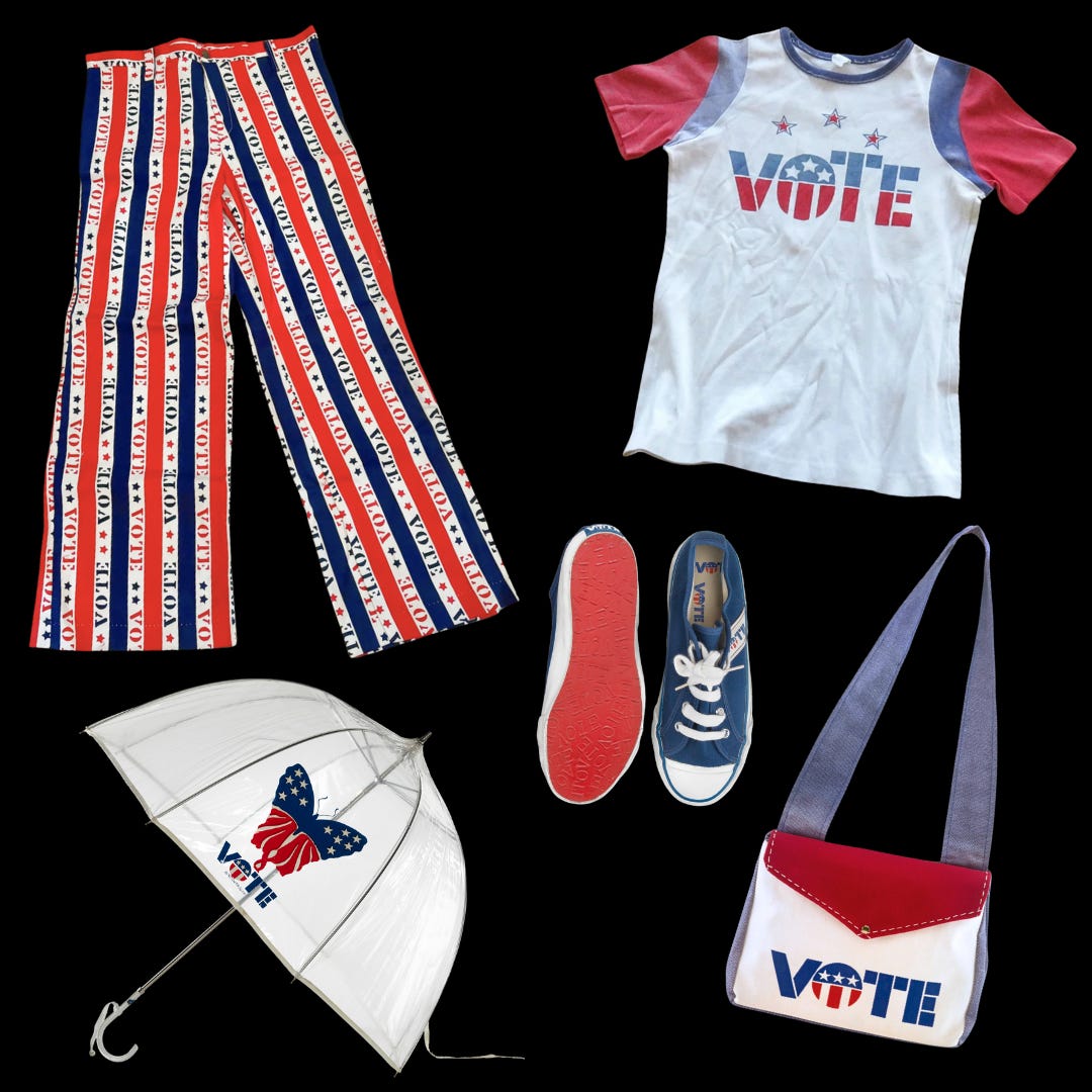 The 1972 presidential campaign marked the first time that Americans 18-20 were able to cast their ballots for the candidate in the favor. The Student Vote Project worked on getting the word out on popular radio stations and released a youth centered line of clothing and accessories designed to make voting something to proudly display. Purses, tee shirts, buttons, pants, sneakers and even umbrellas boldly displayed the word “VOTE”.