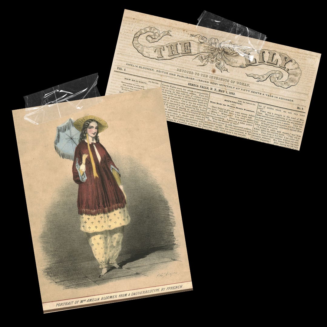 Though they are now synonymous with “it-girls” of the 2020s, “bloomers” got their start as political weapons. American feminist and early suffragette Amelia Bloomer wrote an article in the April 1851 edition of her newspaper The Lily, the first US newspaper to be edited by and for women, that opened the conversation of women’s dress in a way that had never been done before. The essay included a print of herself wearing a daring outfit that layered a pair of “pantaloons” underneath a knee length skirt - offering it as a comfortable alternative to corseted and heavy petticoated layers that upper and middle class women were accustomed to at the time.