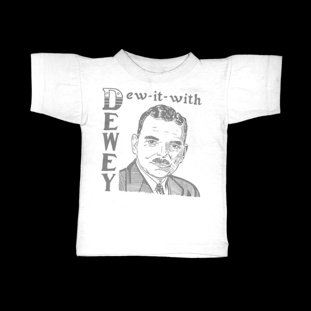 The 1940s also saw the first known example of a political tee shirt, with New York governor Thomas E.Dewey’ printing a tee that read “Dew it with Dewey” for his 1948 presidential campaign.